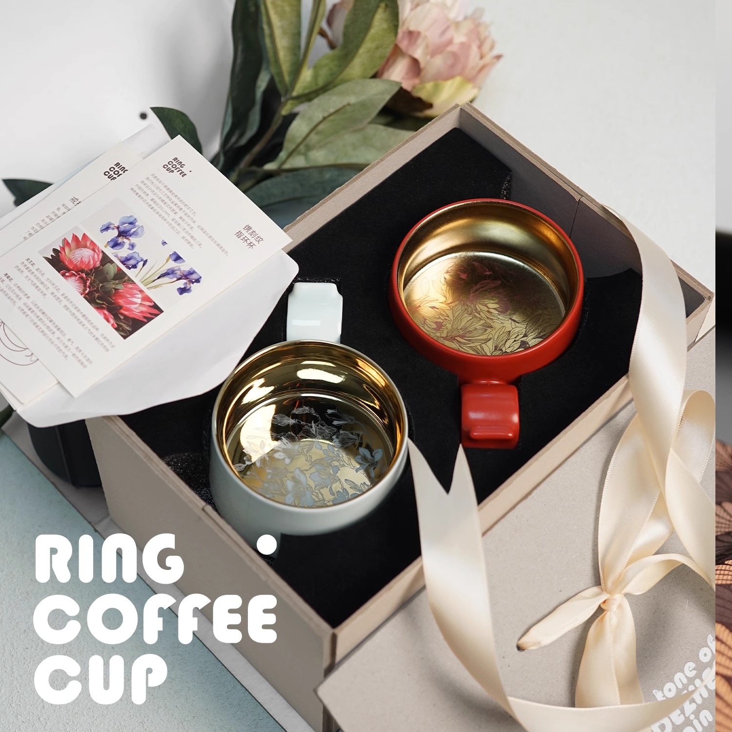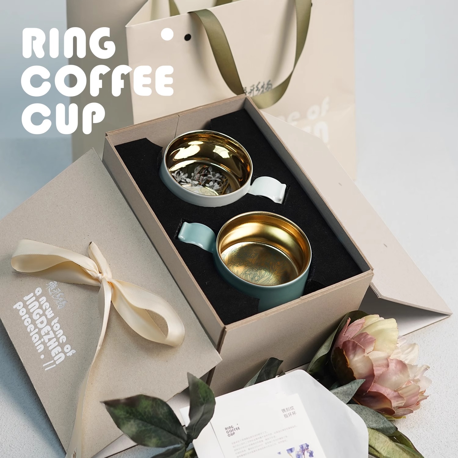 飞形物指环咖啡对杯礼盒情侣杯子乔迁新结婚礼物一对套装 景德镇行