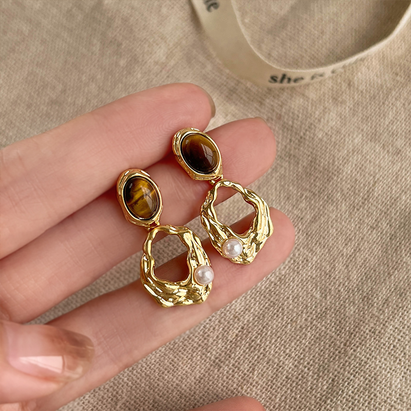 金色复古珍珠款 耳饰 耳环女轻奢气质耳坠小众独特港风耳钉2025新款