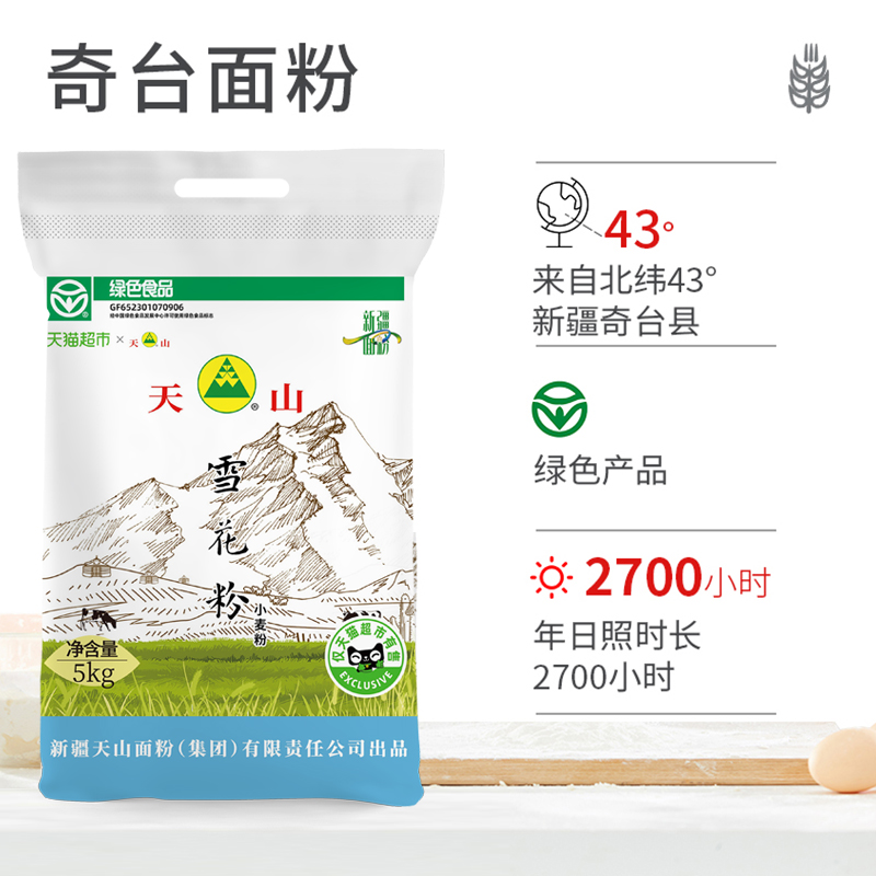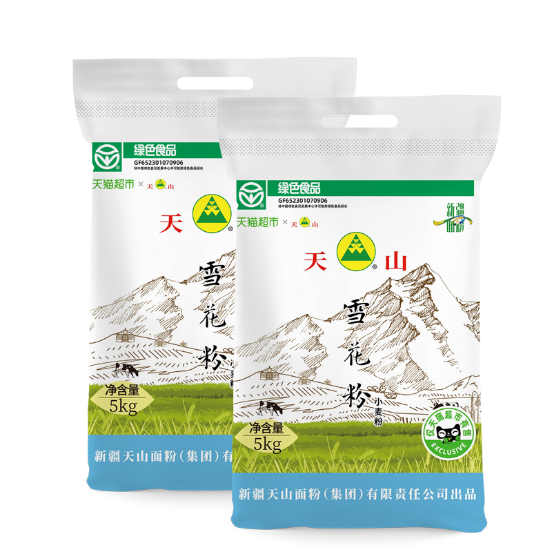 新疆天山雪花粉家用多用途中筋小麦粉白面烘焙原料冬小麦5kg 2袋