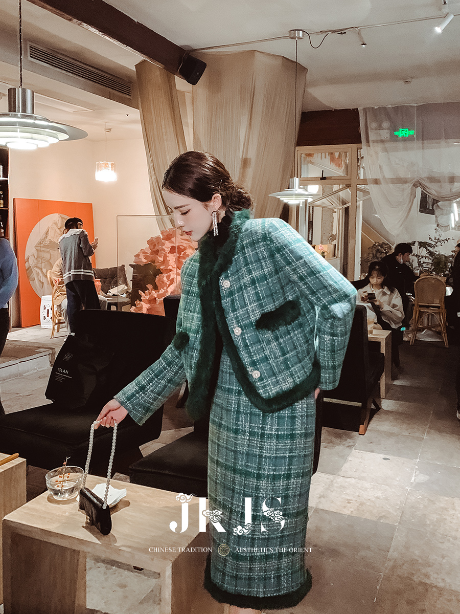 套装 绵羊毛两件套秋冬高级时装 兔毛拼接 搭配一整套时尚 JKJS冬装