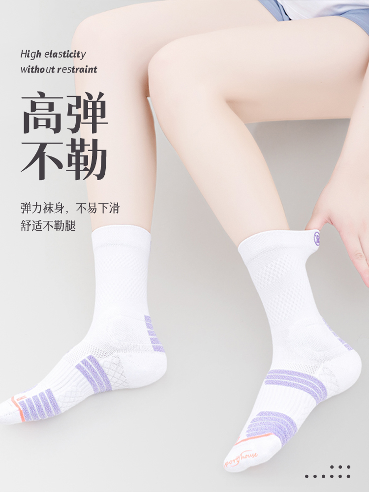 专用羽毛球袜子女中筒加厚毛巾底健身专业跑步运动袜女款 网球篮球