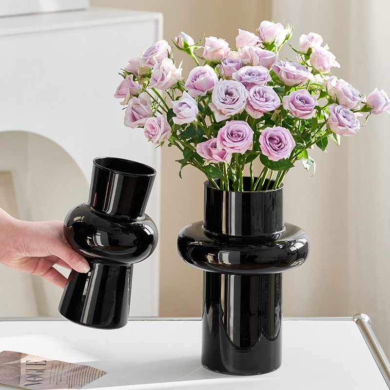 中古小众玻璃花瓶摆件客厅ins风黑色水养插花鲜花干花创意高级感