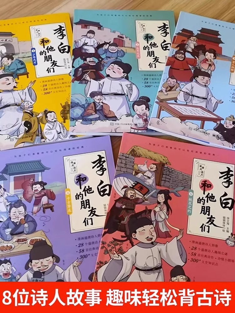 生平故事漫画大语文系列小学生课外阅读书籍三四至六五年级儿童课外书杜甫孟浩然王维朋友 唐朝诗人 李白和他 朋友们全5册漫画版