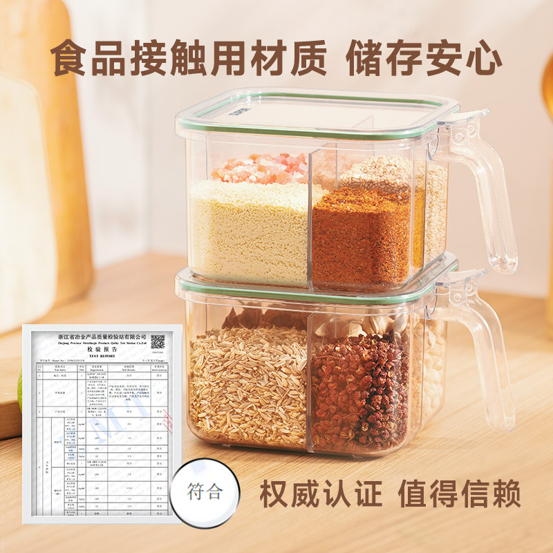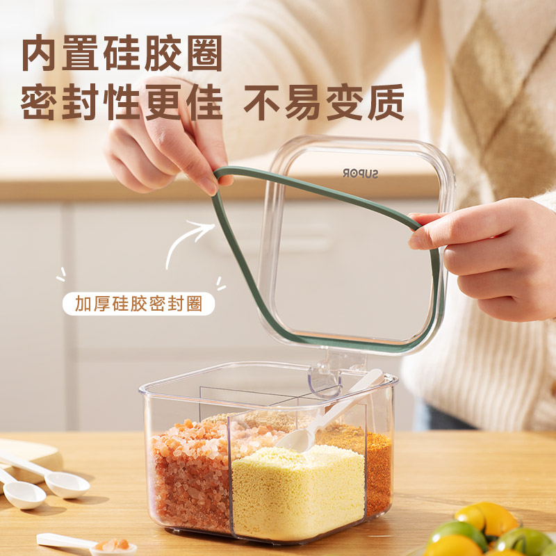 苏泊尔家用厨房调料罐盒组合套装 一体多格盐味精收纳佐作料调味瓶