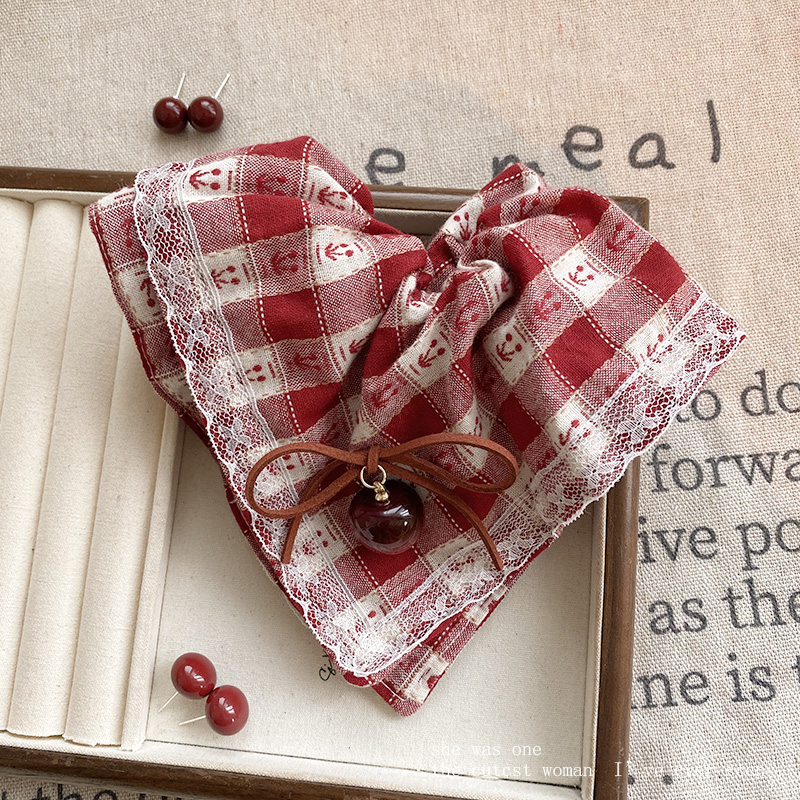 红色樱桃蝴蝶结方巾大肠发圈女韩系高级感扎马尾头绳发饰气质新款
