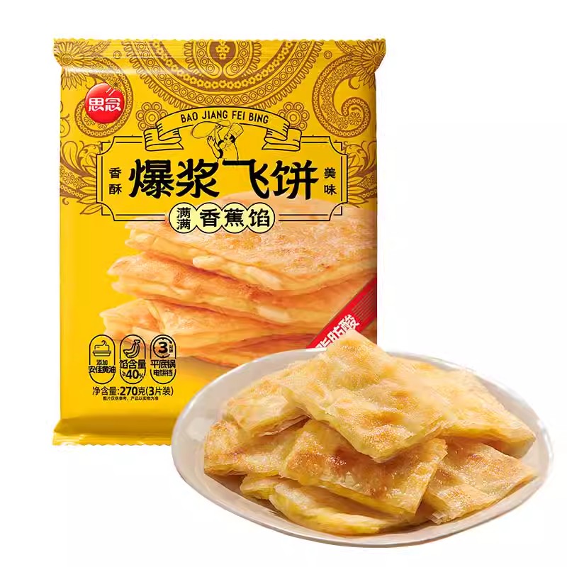 思念爆浆香蕉榴莲飞饼早餐面饼手抓饼煎饼速食休闲小吃印度飞饼