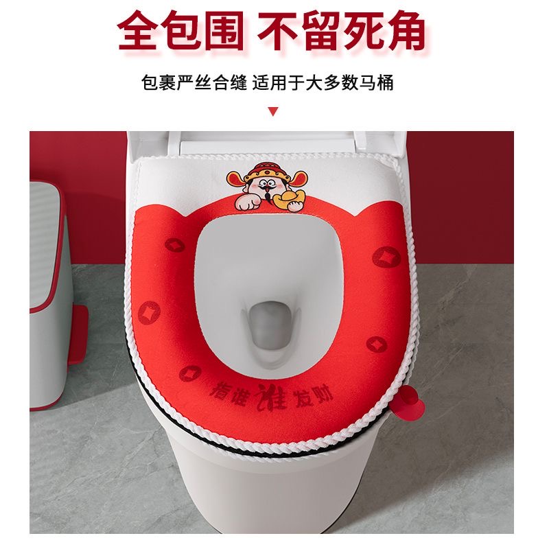 新年大吉红色马桶垫坐垫新春喜庆马桶圈马桶套加厚兔毛绒坐便垫子