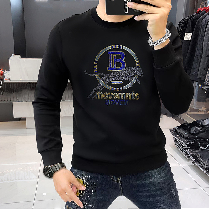 KERWATS秋冬季 宽松纯棉黑色简约字母印花圆领卫衣男加绒 2025新款