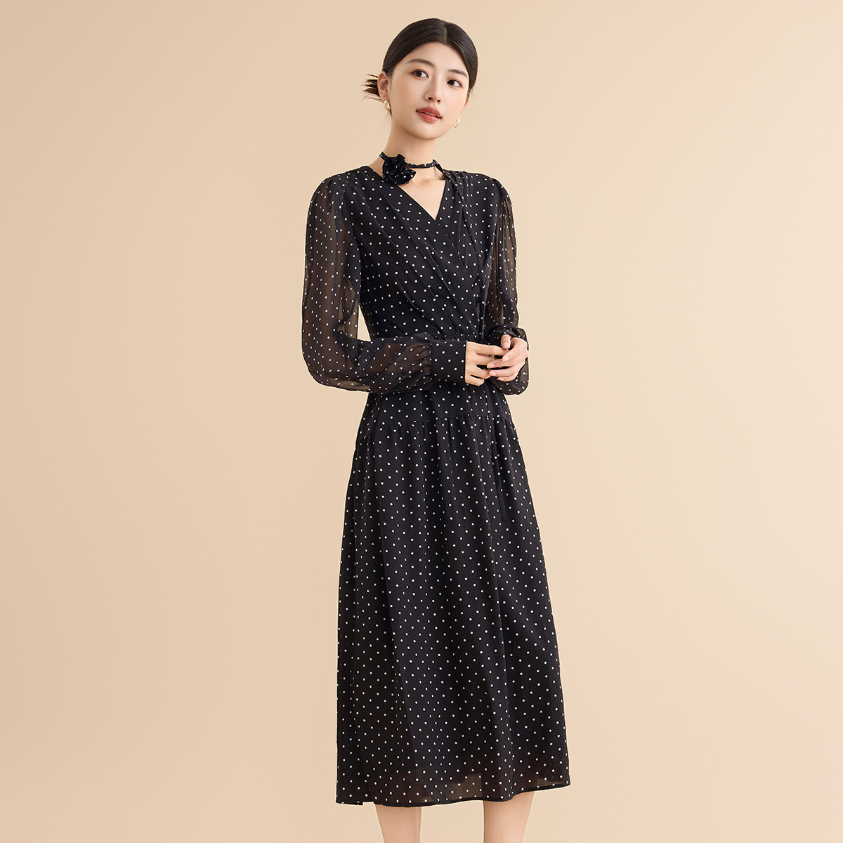 新款 纹连衣裙2025年秋季 乐町学院风格 裙子C1FAF3402 商场同款