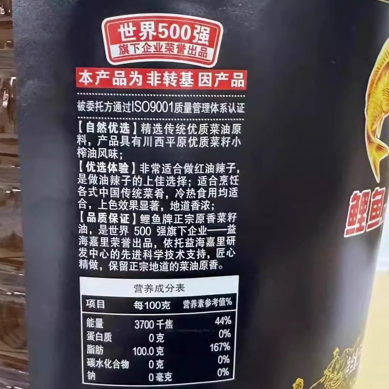 鲤鱼菜籽油正宗原香4L非转基因物理压榨食用油四川菜油金龙鱼出品