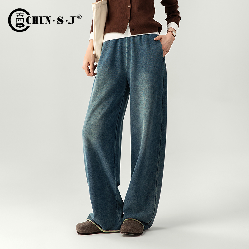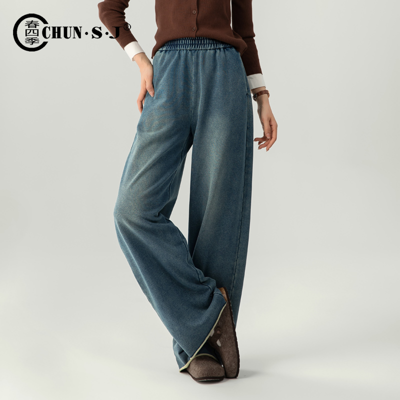 女2025秋季 慵懒宽松高腰弯刀裤 新款 子拖地长裤 裤 复古阔腿牛仔裤