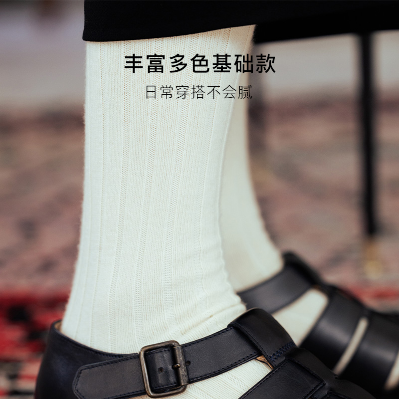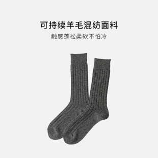 袜 西装 Tabio羊毛袜子男秋冬百搭纯色长筒袜皮鞋 长袜黑色商务正装