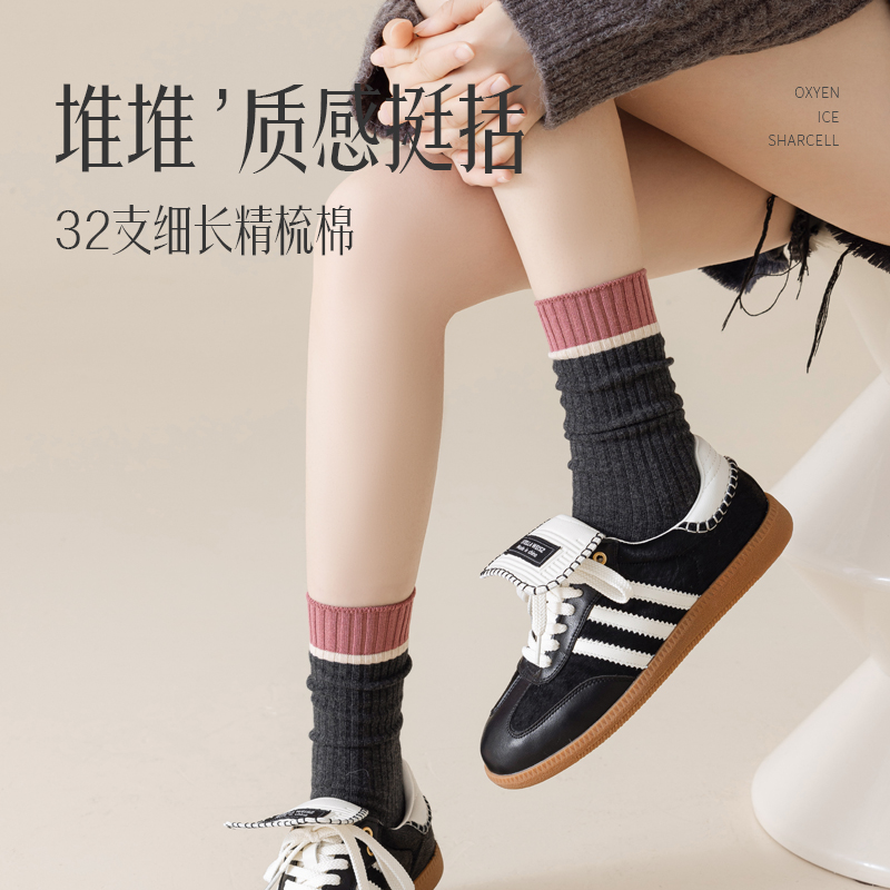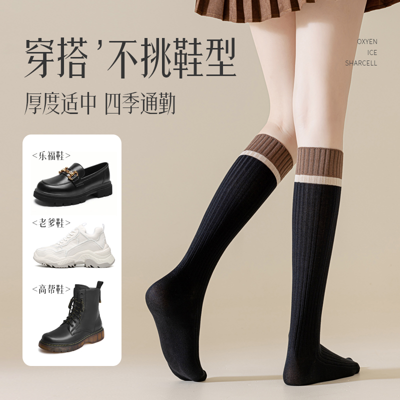 小腿袜女春秋纯棉JK灰色长筒袜显瘦半截中筒及膝高筒长袜2025新款