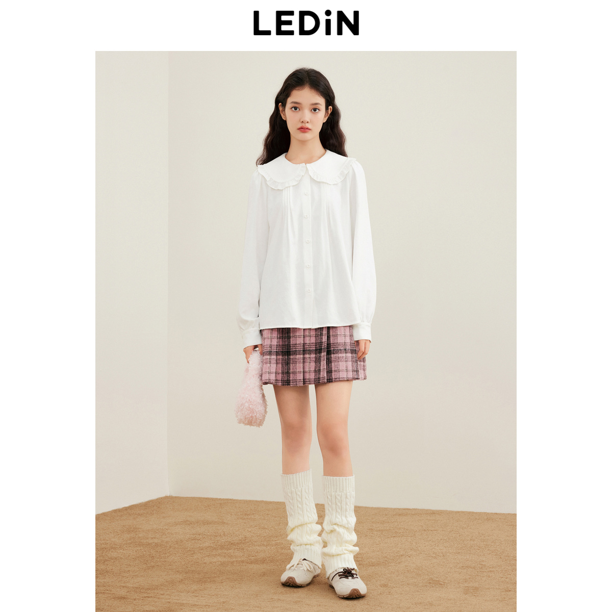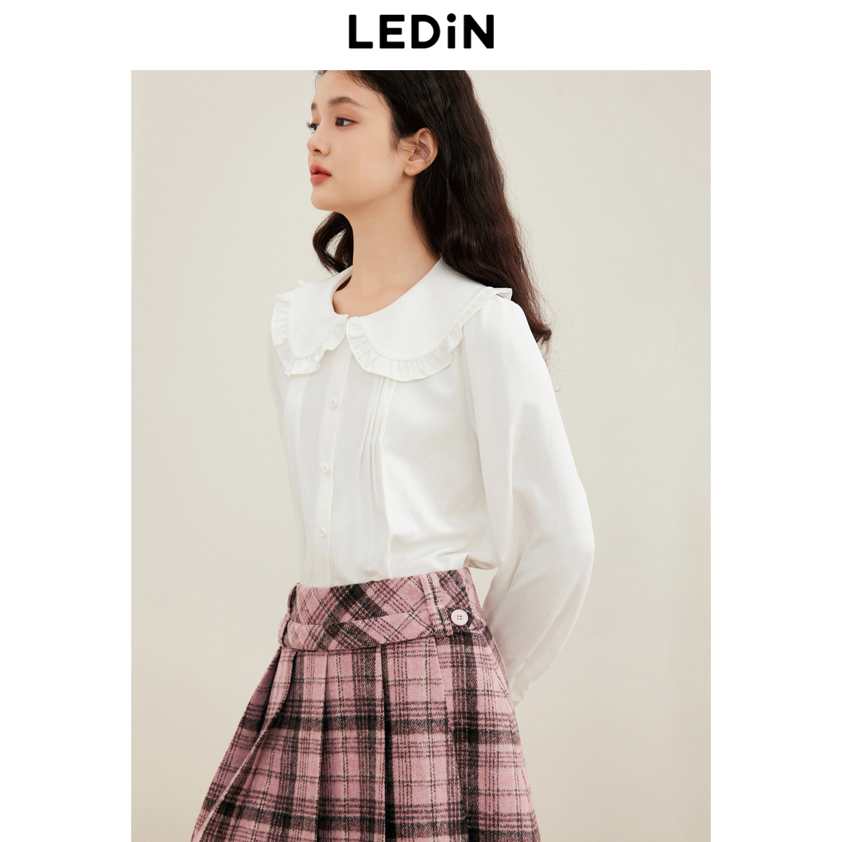 花边大翻领白色衬衫 新款 上衣 冬季 乐町甜美少女娃娃领衬衫