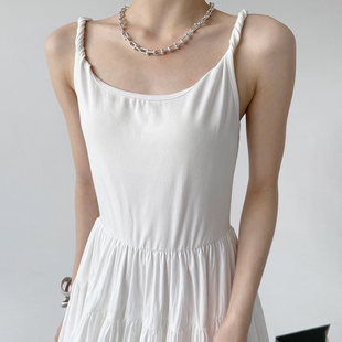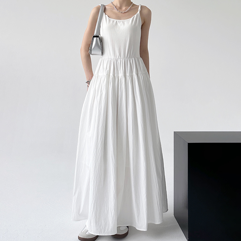 a字吊带背心裙高级感气质长裙子 新款 无袖 v领丝绒连衣裙女2025秋装