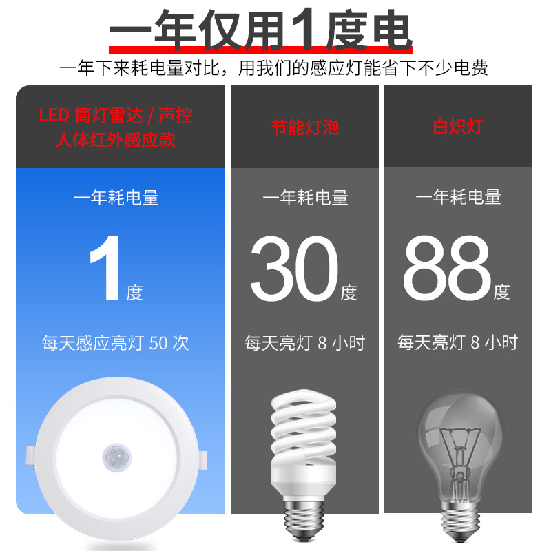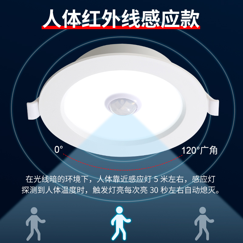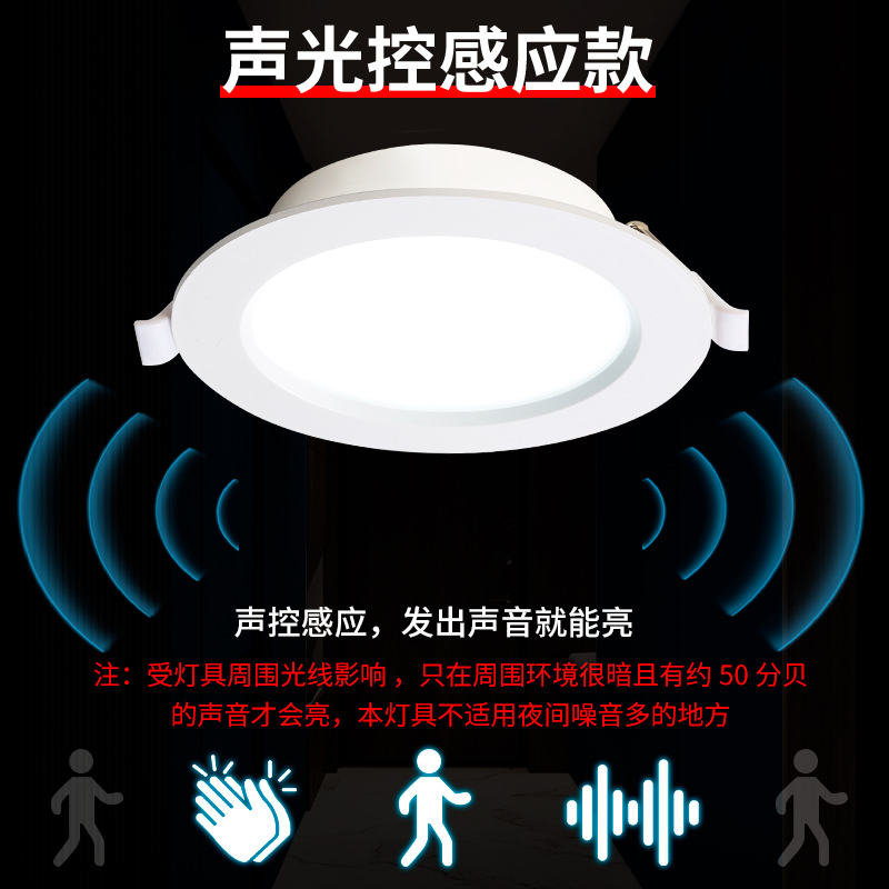 led智能声控人体感应筒灯嵌入式 天花灯家用吊顶玄关过道走廊射灯