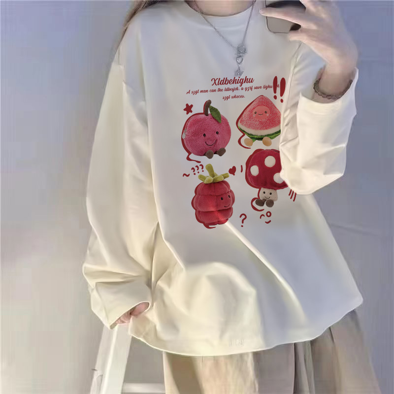 T恤夏 女内搭oversize宽松显瘦上衣ins情侣长袖 欧货大码 纯棉打底衫