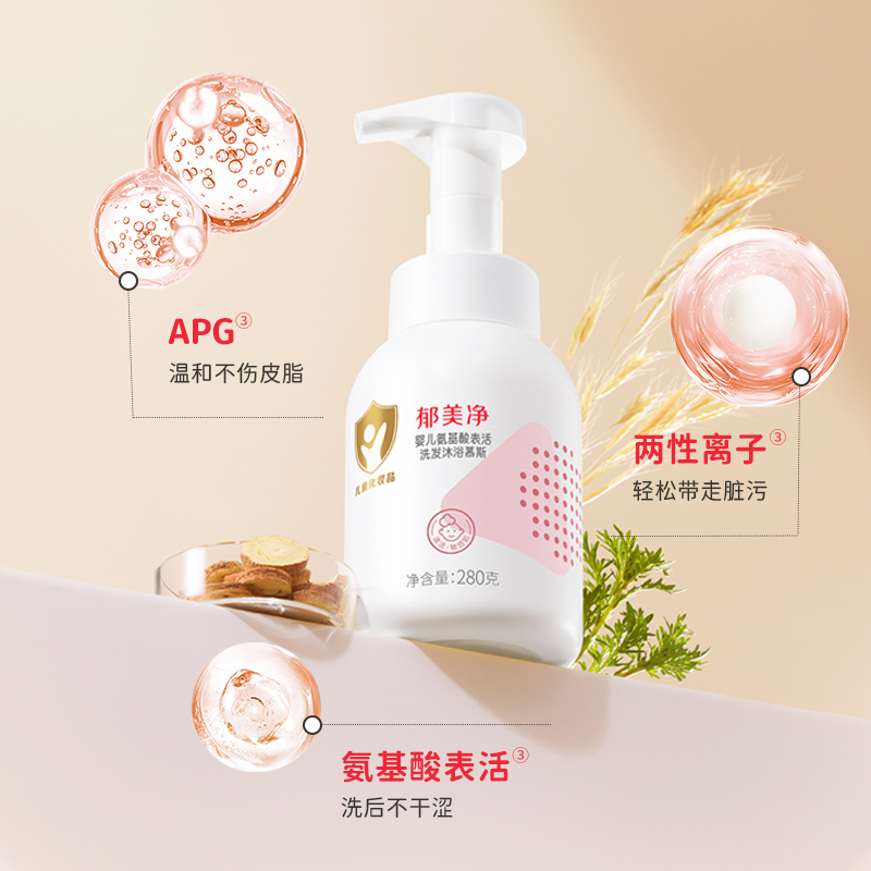 郁美净婴儿氨基酸表活洗发沐浴慕斯二合一宝宝泡泡浴沐浴乳慕斯
