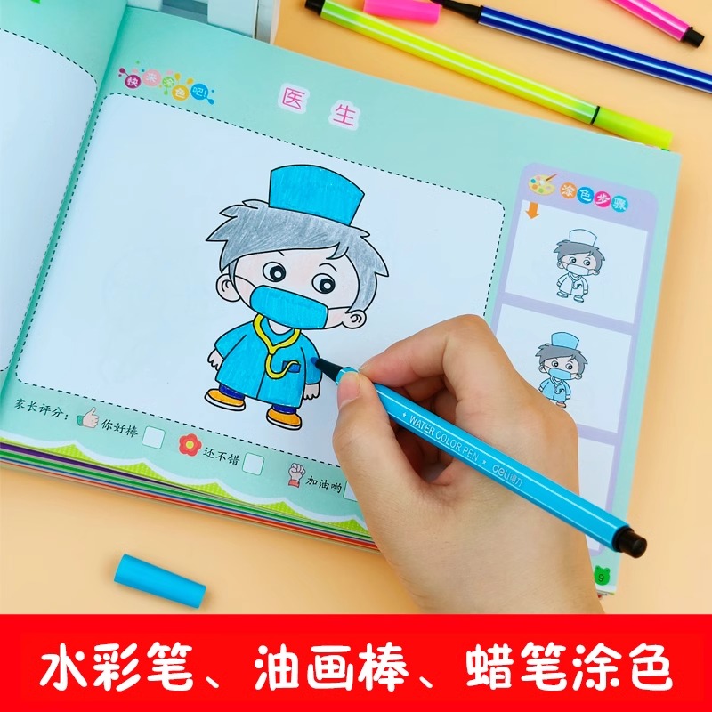 6岁绘本幼儿园三岁宝宝绘画启蒙教材学画画图书简笔画入门自学零基础幼儿创意美术涂色画线描画书籍 全8册 儿童趣味阶梯涂色书2