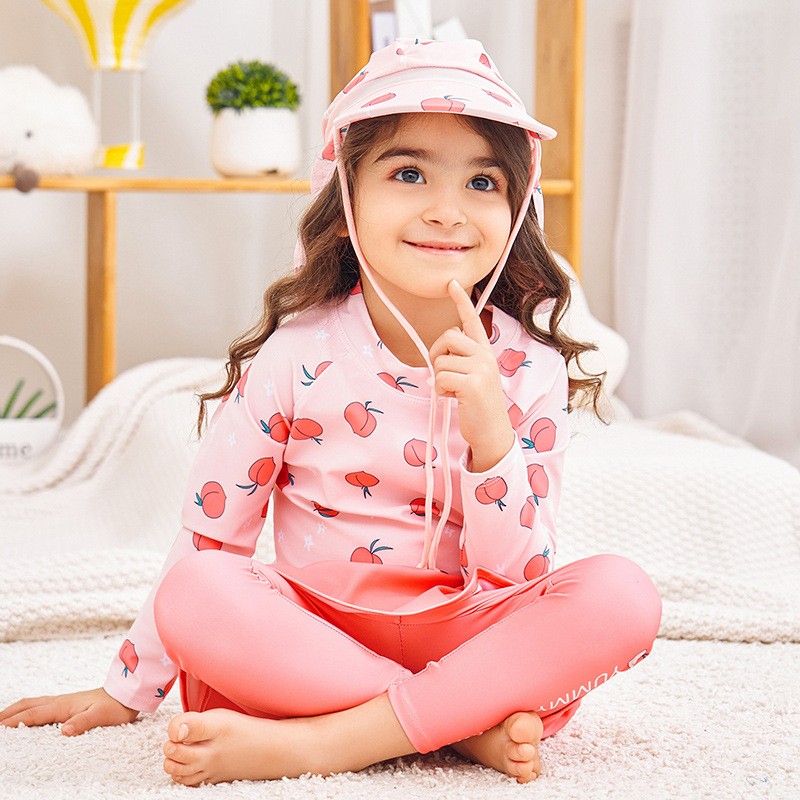 防晒泳衣中小童女童速干游泳套装 长裤 儿童游泳衣女孩长袖 韩国新款