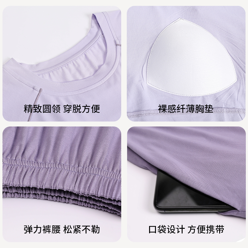 家居服套装 猫人莫代尔带胸垫女士睡衣女款 薄款 新款 可外穿2025夏季