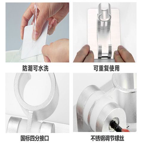 免打孔花洒底座插架太空铝无痕粘贴可调节支架淋浴金属增压背胶