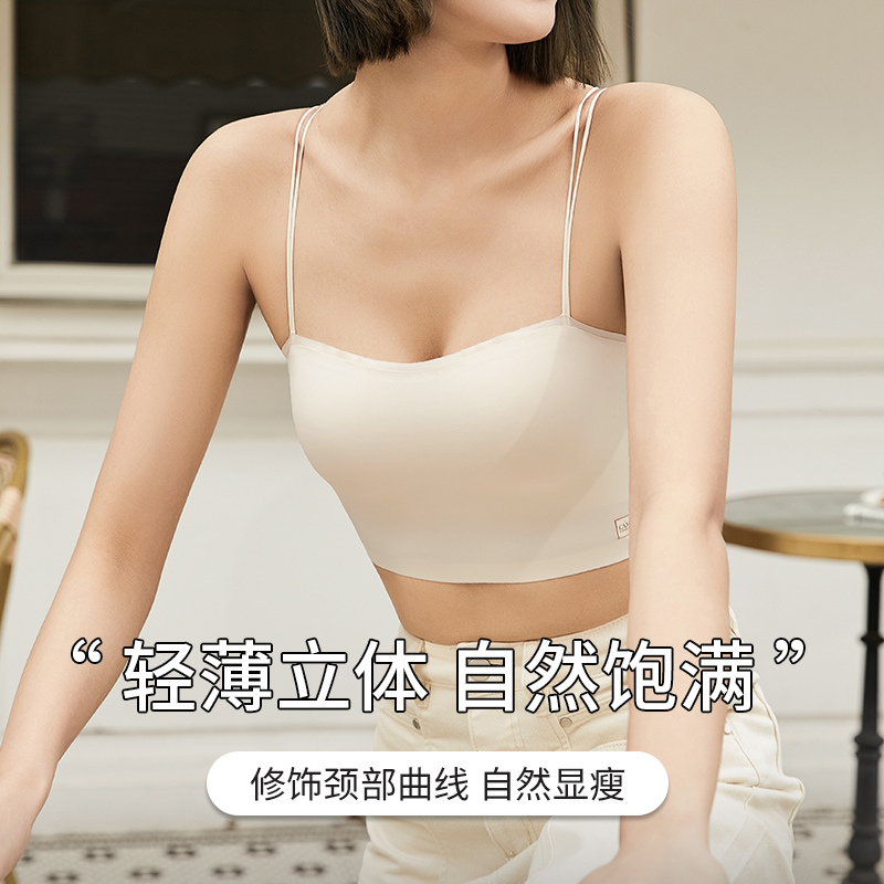 蕉树吊带内搭外穿带胸垫薄款 小胸聚拢裸感固定杯防下垂防滑抹胸