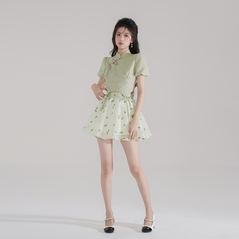 清仓价 2025国风时尚 绿色新中式 半身裙两件套女夏季 套装 衬衫