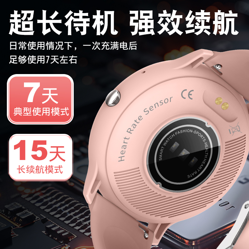 高清触屏1.39英寸超强续航手表多种运动模式 跑步超长待机智能防水蓝牙 健康睡眠监测全彩圆形大屏来电提醒女款