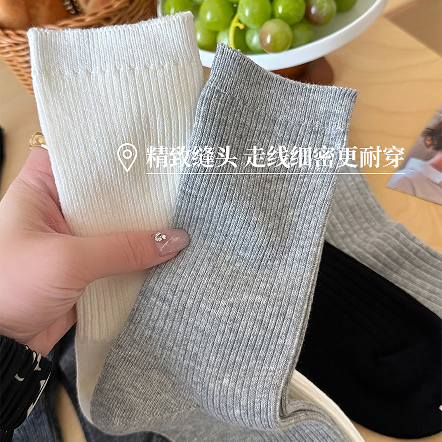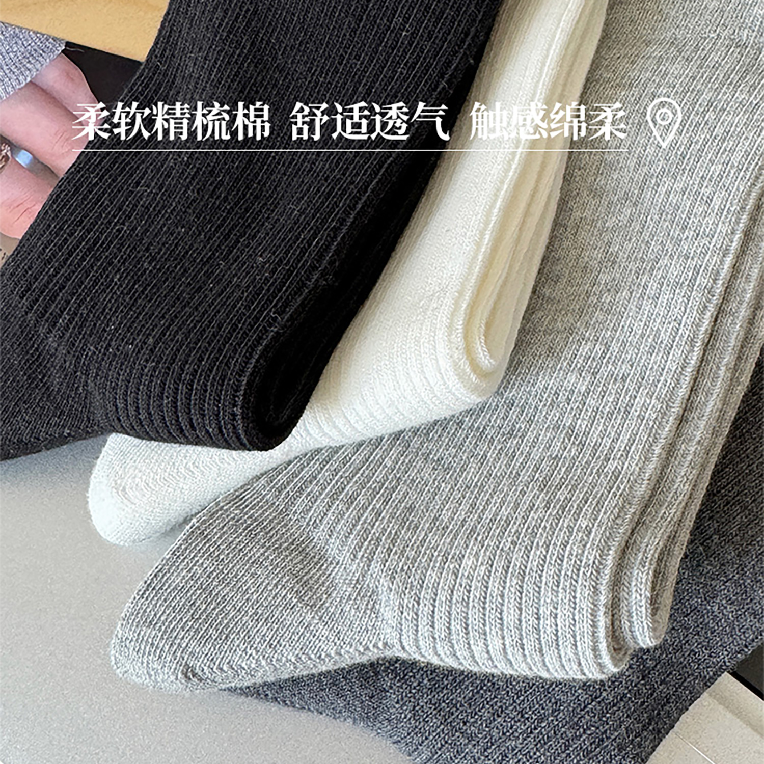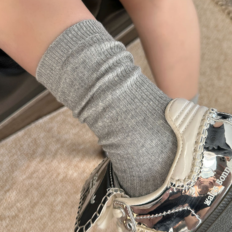 长筒白色中筒袜春秋棉堆堆袜女搭配小皮鞋 韩版 款 灰色袜子女秋冬季