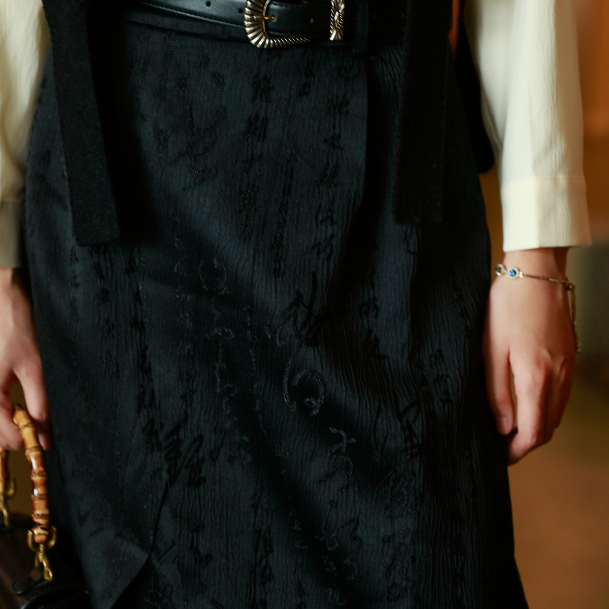 西町村屋半身裙女冬新款 提花书法直筒长裙AD8903002 设计感新中式
