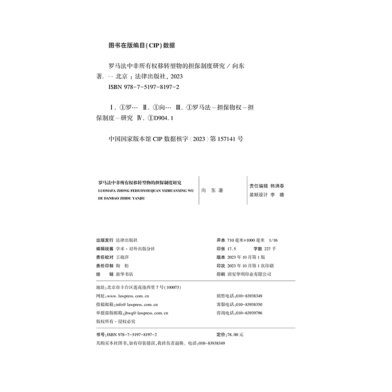 2023新书 法律出版 罗马法中非所有权移转型物 向东 社9787519781972 担保制度研究 正版