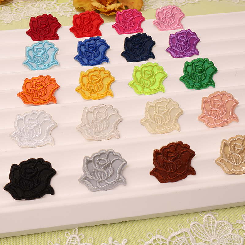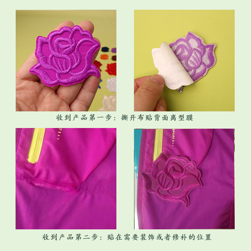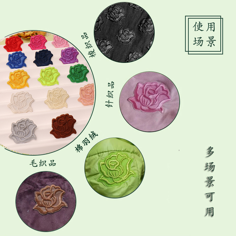 自粘玫瑰花图案刺绣布贴羽绒服补洞修复贴花床单窗帘装 饰补丁贴花