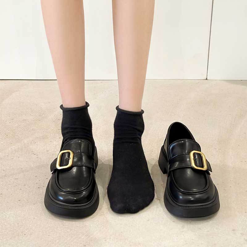 日系黑色复古厚底学院风jk乐福单鞋 英伦小皮鞋 女春秋百搭加绒棉鞋