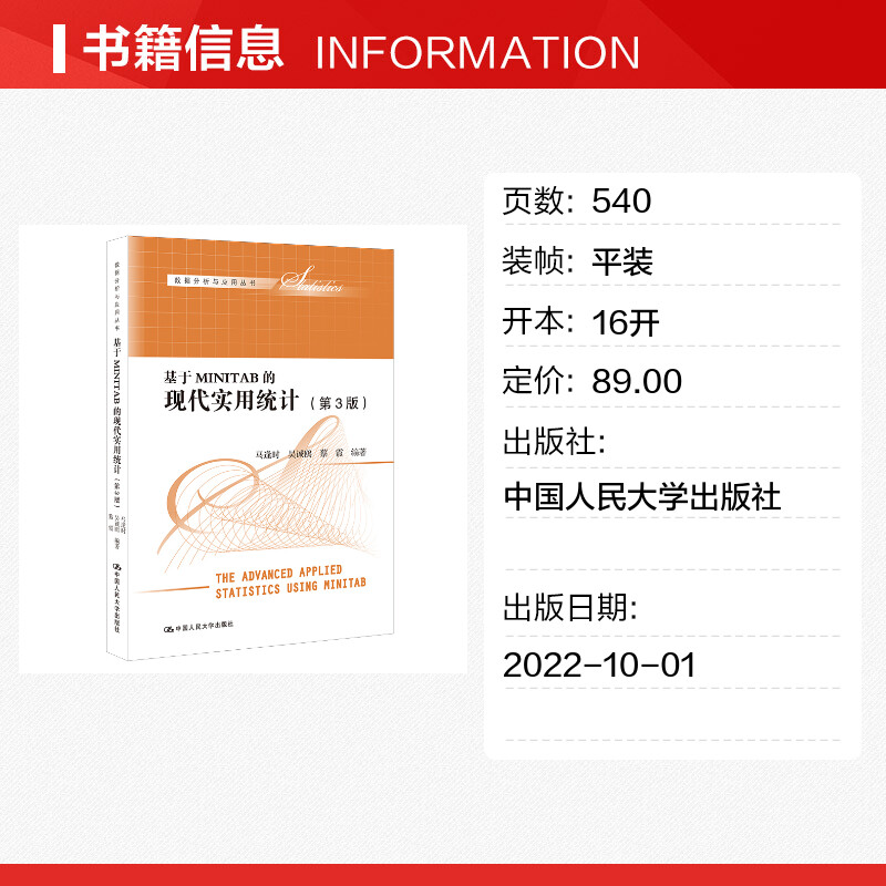 大学教材经管 现代实用统计 蔡霞 基于MINITAB 励志 中国人民大学出版 马逢时 图书籍 第3版 社 吴诚鸥 新华书店正版 编