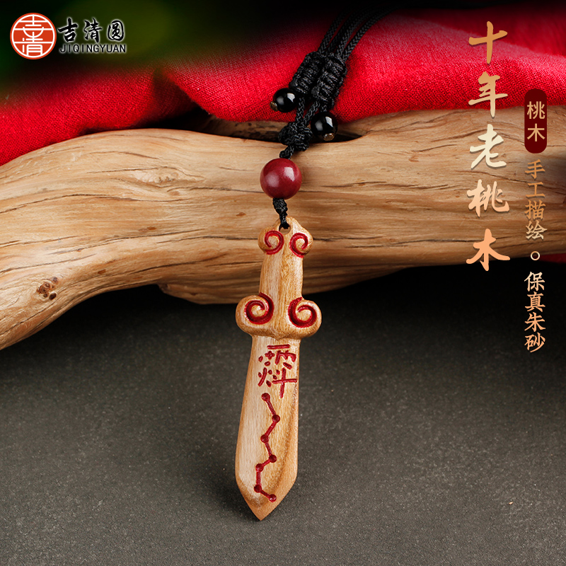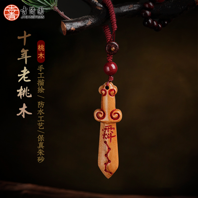 纯桃木剑挂件朱砂七星剑宝宝成人婴儿男女孩儿童随身挂项链钥匙扣