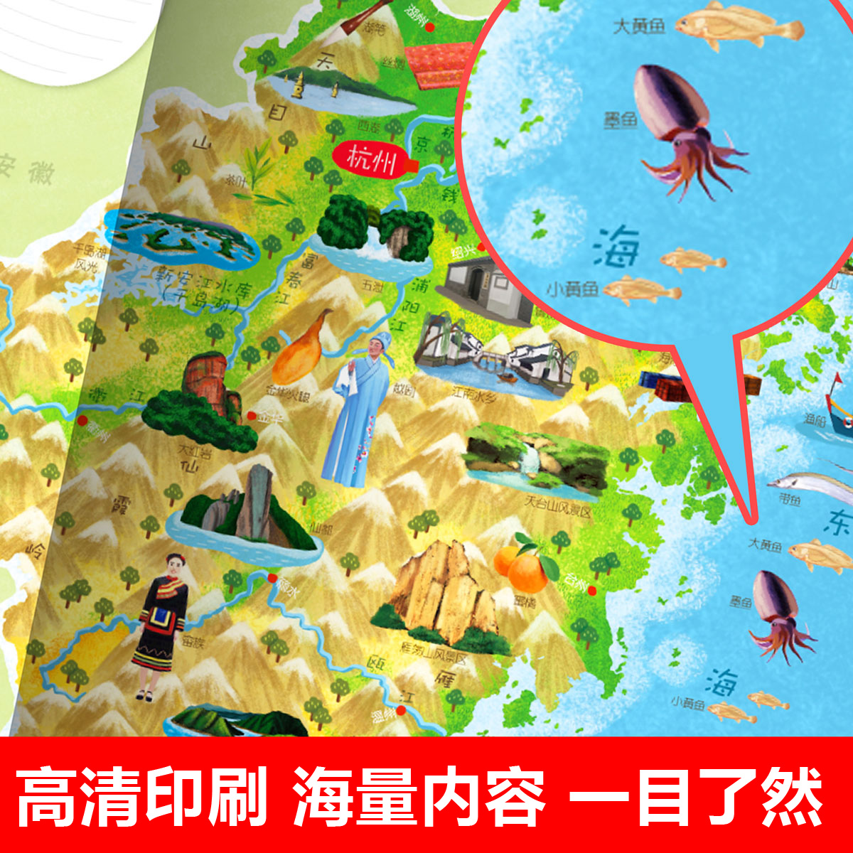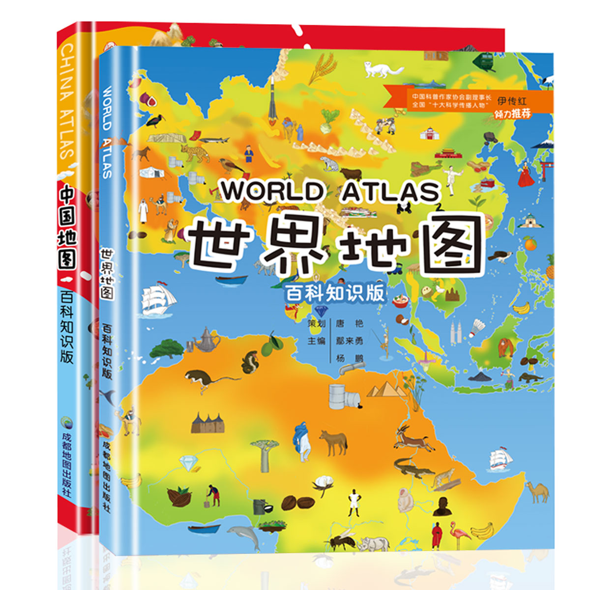 精装 初中小学生地图册 大开本 2册学生专用大图大尺寸儿童版 地理知识手册手绘高清绘本 中国地图和世界地图百科知识版