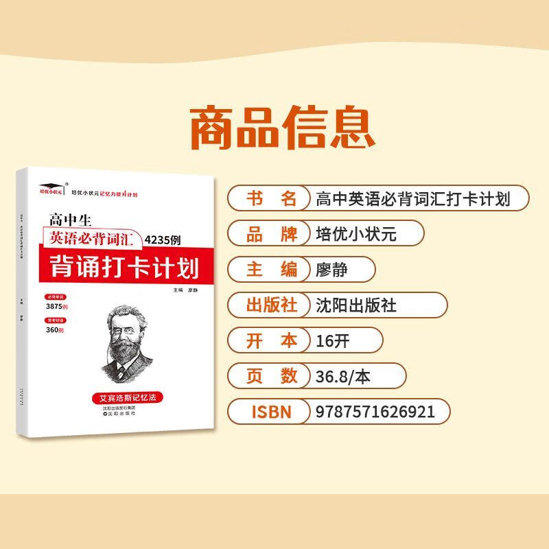 高中生英语必背词汇4235例背诵打卡计划 高一二三年级英语单词记忆法遗忘曲线记忆本高中通用高考总复习资料辅导书 艾宾浩斯记忆法
