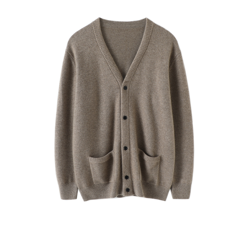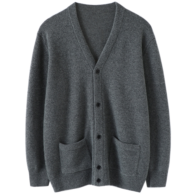 男装 纯羊绒毛衣男针织衫 气质 山羊绒开衫 外套 加厚V领男士 少见
