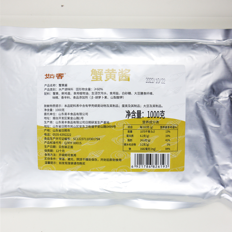 姑香蟹黄酱商用1kg寿司食材紫菜拌饭即食蟹黄膏海鲜酱正宗1000克