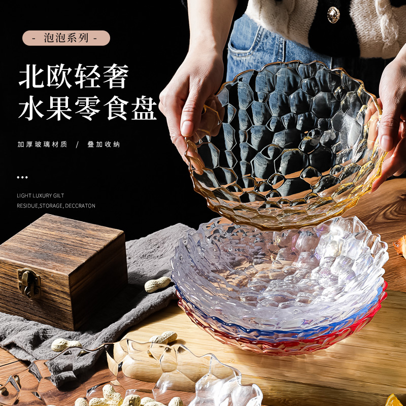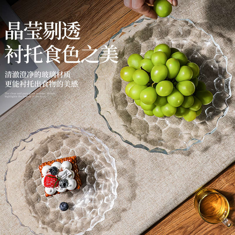 透明玻璃水果盘轻奢高档家用客厅茶几高级感大号精致零食摆放盘子