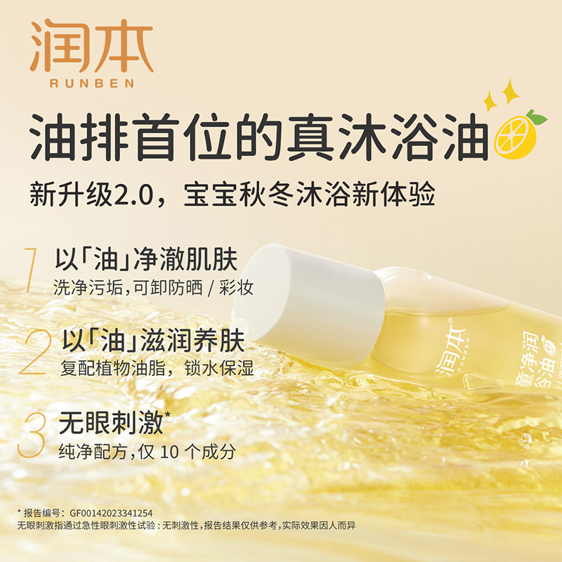 沐浴乳正品 润本儿童沐浴油婴儿宝宝洗护沐浴露秋冬季 专用滋润保湿