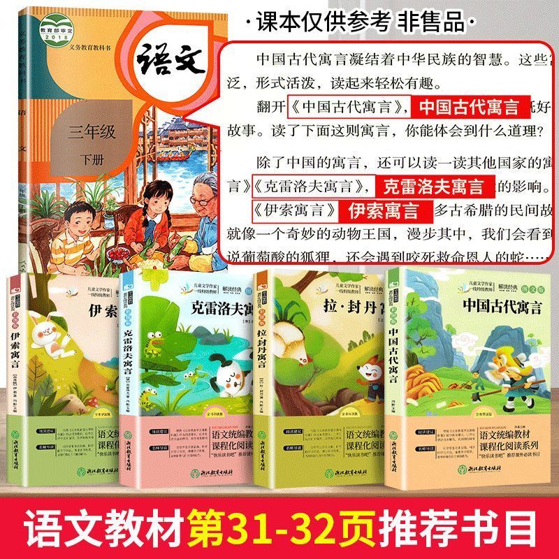 3小学生儿童阅读书籍 小学同步教材人教版 中国古代寓言故事三年级下册必读 课外书快乐读书吧伊索寓言拉封丹寓言克雷洛夫上册正版