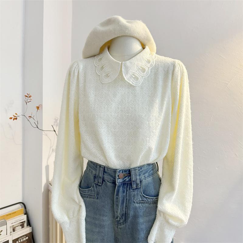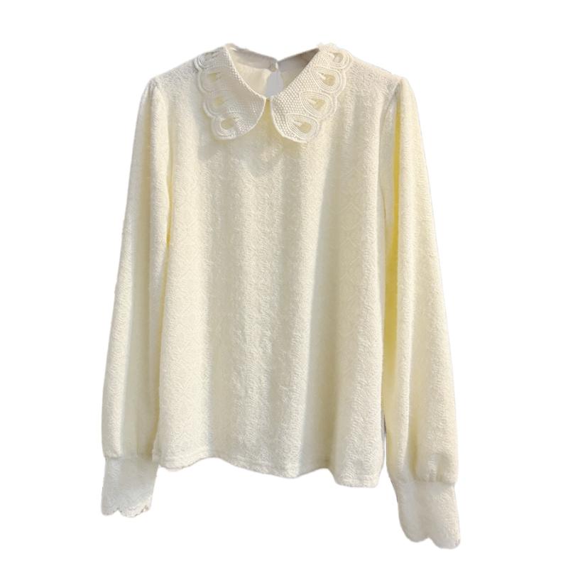 洋气小衫 减龄内搭打底衬衫 上衣杏 加绒加厚女秋冬法式 娃娃领蕾丝衫