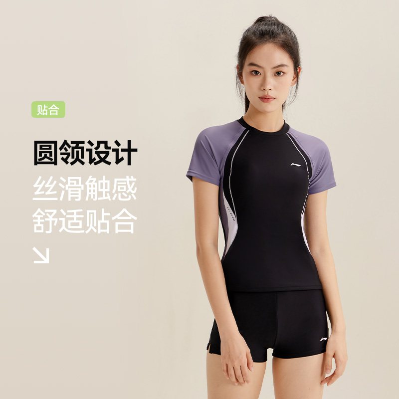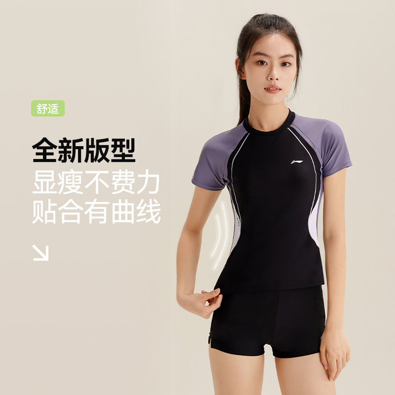 泡温泉游泳衣两件套女 遮肚显瘦保守泳装 李宁分体泳衣女士新款 爆款