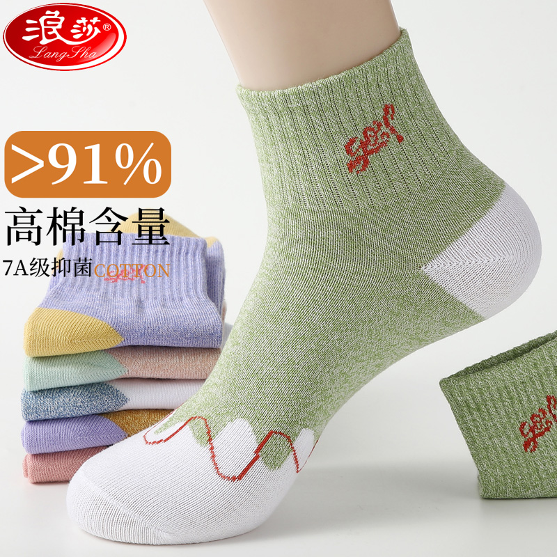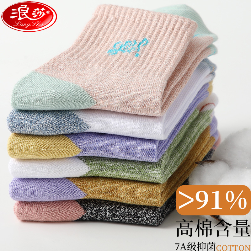 浪莎100%全棉袜子女中筒袜秋冬季 无骨防臭吸汗高档女士保暖纯棉袜