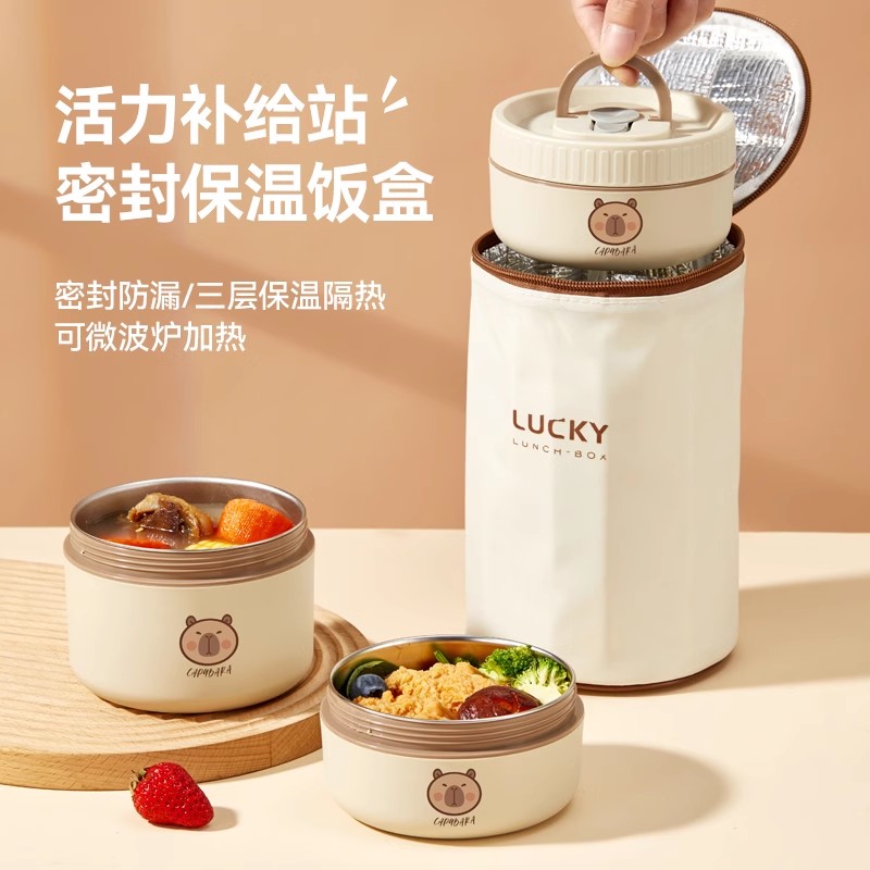 卡皮巴拉316不锈钢上班族保温饭盒分格密封微波炉便当盒学生带饭