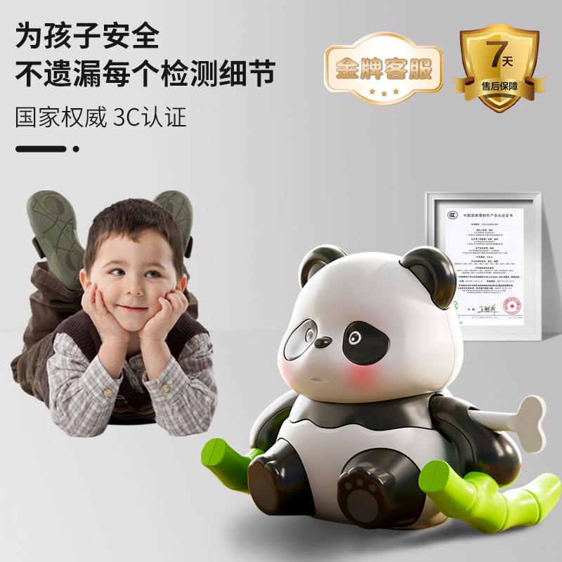 儿童上链上弦翻滚熊猫玩具会动 发条小动物0一1岁宝宝早教学爬行