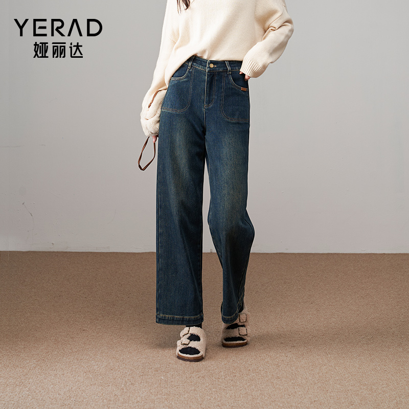 遮肉显瘦保暖裤 娅丽达加绒宽直筒牛仔裤 小个子女裤 新款 女2025冬季