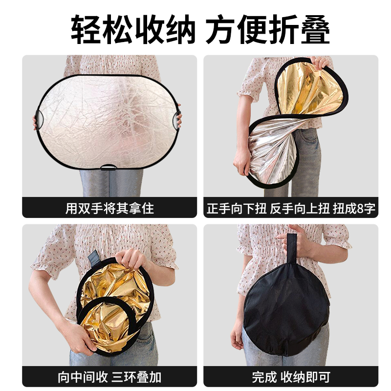 锐富图80 120cm椭圆形反光板补光板五合一手柄柔光板便携折叠拍照摄影手机直播道具外拍手持遮光板人像打光板